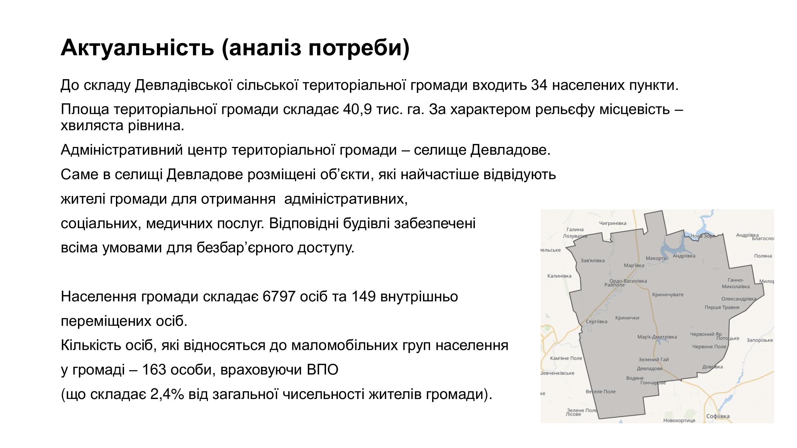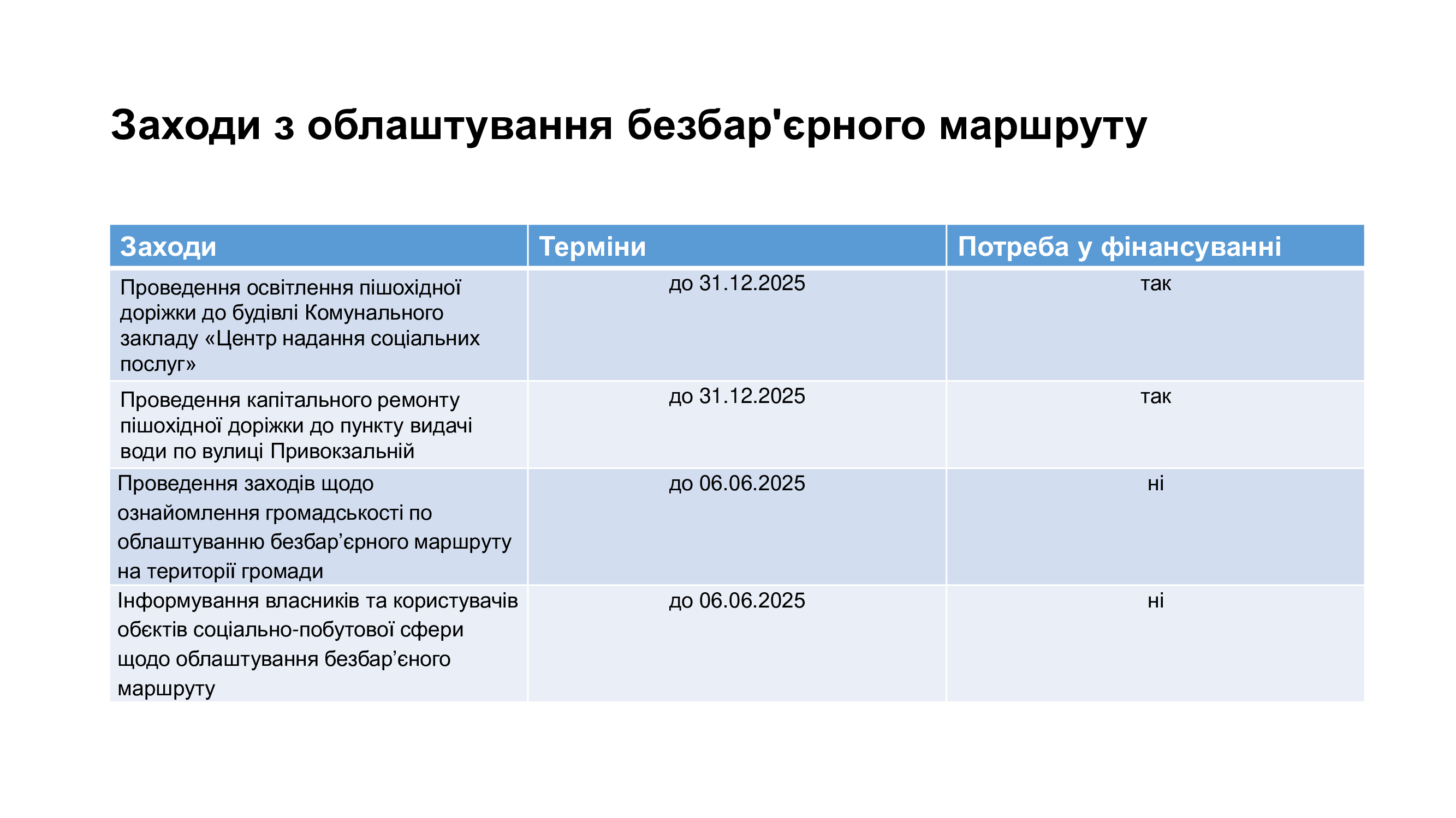 ПЛАН ЗАХОДІВ на 2025—2026 роки з реалізації Національної стратегії із створення безбар’єрного простору Девладівської сільської територіальної громади